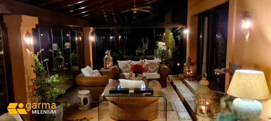 En Garma somos especialistas en transformar espacios. Para ello contamos con un enorme abanico de posibilidades que, bien combinadas, pueden resultar casi mágicos. Este es el caso de uno de nuestros últimos proyectos, donde una terraza (en Villafranca del Castillo) ha sido acondicionada gracias a nuestro equipo de carpintería de madera y nuestra servicio de instalación de cortinas de cristal. Un trabajo como siempre a medida de las más altas expectativas de nuestro cliente, que ha hecho posible la creación de un rincón único, pensado para disfrutarlo al máximo durante cualquier época del año. Elegancia y funcionalidad se dan de la mano gracias a un proyecto bien orientado y estudiado por nuestros profesionales. Seguimos mejorando hogares. Disfrute ya del efecto Garma en su hogar por menos de lo que imagina.