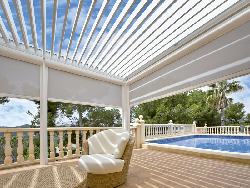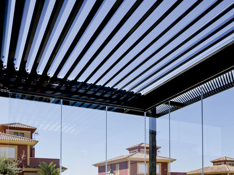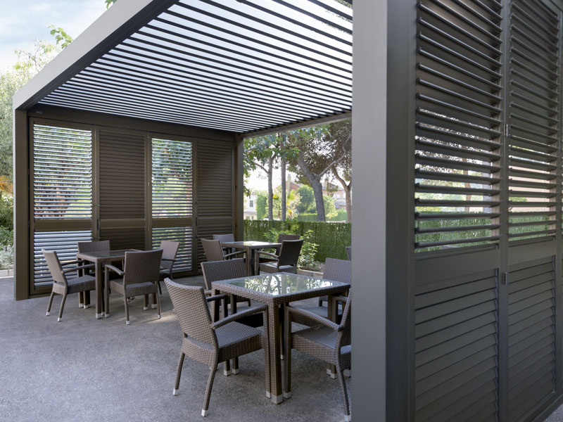 Las pérgolas bioclimáticas Saxun regulan la temperatura de la estancia de forma natural y al mismo tiempo protegen de la radiación solar, la lluvia, el viento o la nieve.