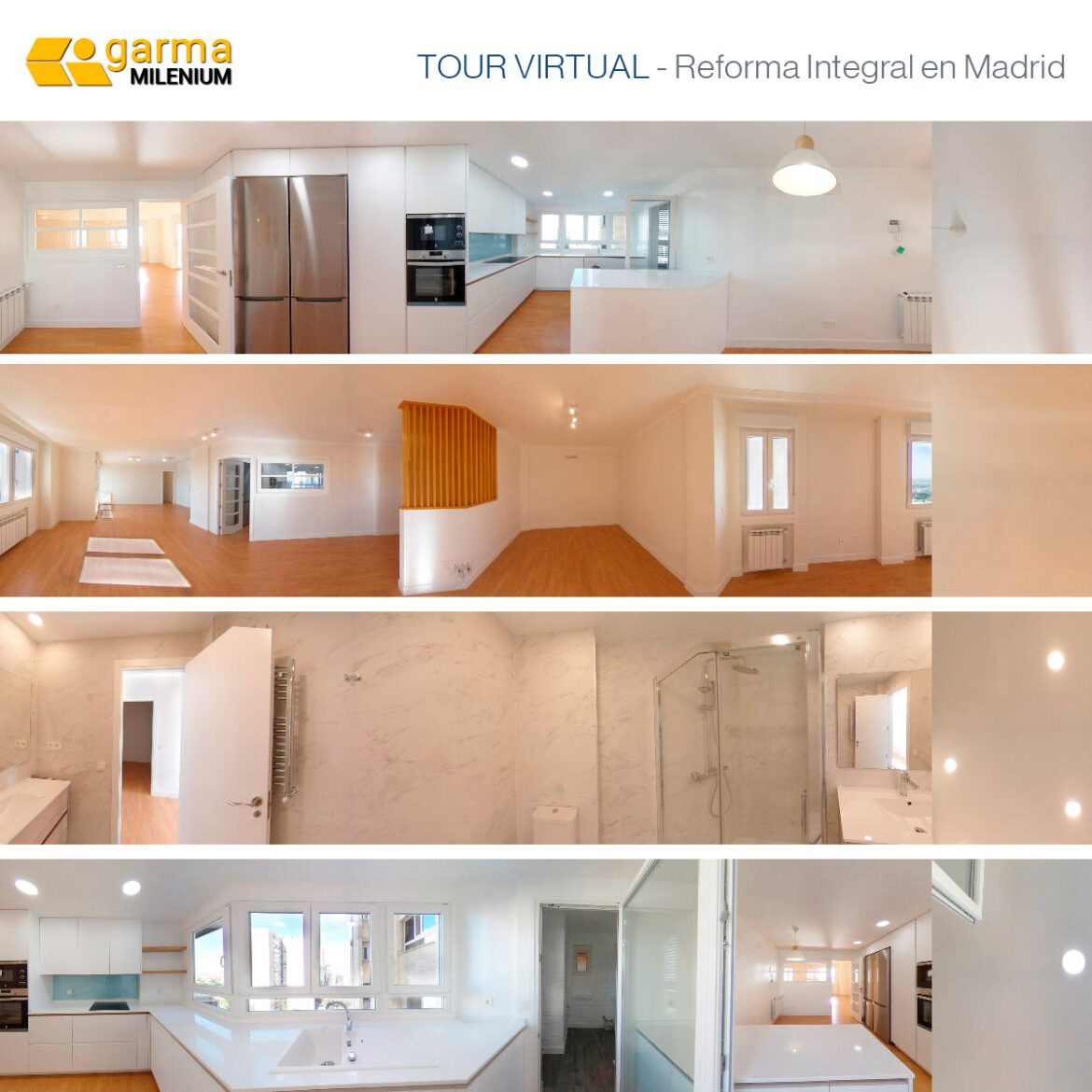 Si recientemente presentábamos algunas imágenes de nuestra última reforma integral, finalizada en un barrio de Madrid, en esta ocasión aportamos una visita virtual 360º de este mismo proyecto. Una manera más completa y eficaz de mostrar el trabajo realizado casi como si se pudiera visitar la vivienda con total libertad. Gracias al tour virtual, podrán