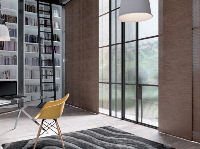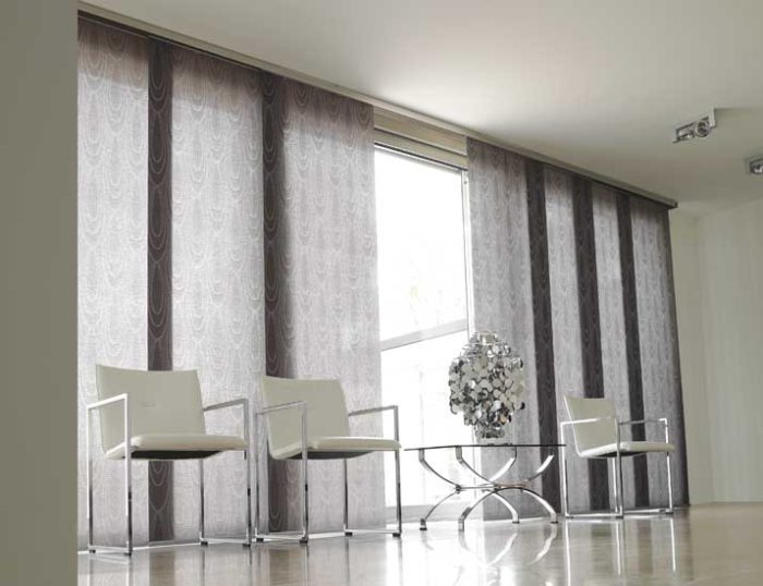Es la solución perfecta para cubrir grandes superficies acristaladas. Un sistema elegante y minimalista, tanto por sus formas como por su suave deslizamiento, que presenta múltiples posibilidades. Ofrece una amplia gama de tejidos, que permite la combinación de diferentes colores y texturas en los diferentes paneles que confieren una misma cortina.