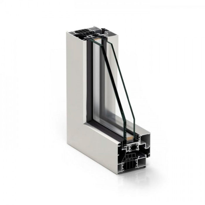 Gracias a su diseño de perfilería que mantiene la hoja totalmente oculta desde el exterior se logra minimizar su sección de perfil visto de aluminio hasta 70 mm., maximizando así la superficie de acristalamiento de la ventana.